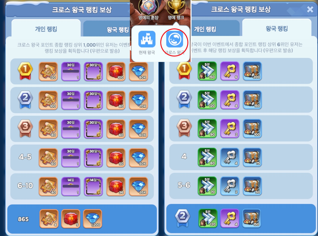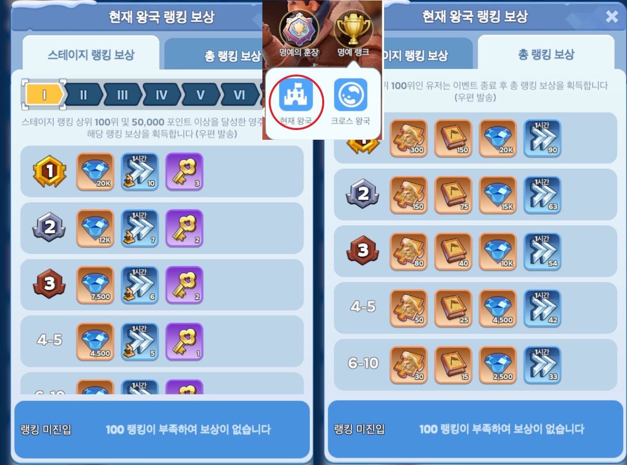 이 이벤트가 왜 좋은가 설명드리자면, 보상이 2배입니다. 기존의 최강영주의 경우, 우리 서버에 있는 유저들끼리 순위 경쟁을 하지만, 빙원의 왕은 서버내 + 서버 외적인 경쟁이기 때문입니다.