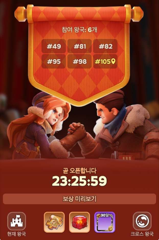 그래서 빙원의 왕이 시작되기 전에 미리 패키지만 사고, 건설/연구/훈련 가속을 땡기지 않고 존버하는 경우도 가끔 있습니다.