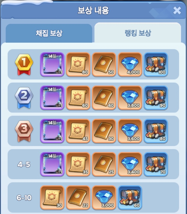 - 저장, 채집, 스킬 포인트 합산으로 랭킹을 정합니다.
