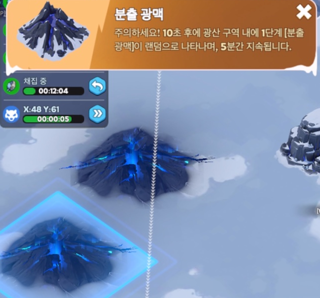 - 분출광맥 등장 전에는 전조 현상으로 맵에 표시되어 미리 확인가능합니다.