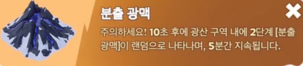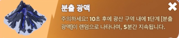 - 분출 광맥은 5분간 맵에 나오며, 등장과 별개로 5분간만 유지됩니다.