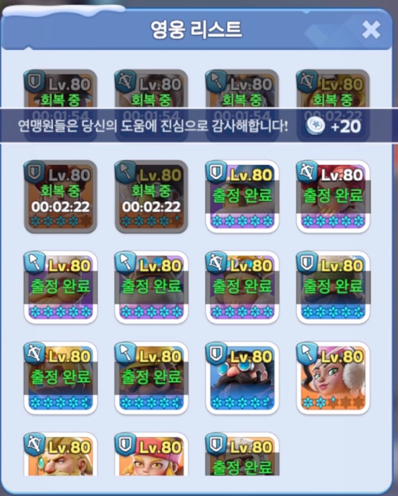 - 전투에서 패배하면 해당 영웅을 사용할 수 없습니다.