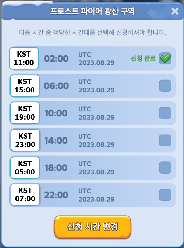 주로 11:00에는 일찍 숙제를 끝내고 싶은 유저들이 많기 때문에 상당히 빡센 난이도를 자랑합니다. 그래서 투력이 낮을수록 18:00 혹은 22:00 의 후반 시간대를 이용하는게 높은 포인트 획득에 유리합니다.