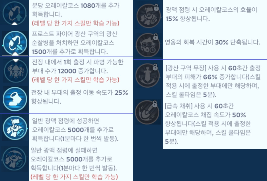 - 각 단계별 스킬은 1개만 선택할 수 있습니다.