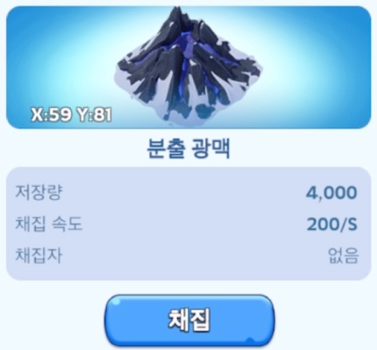 - 단계별 분출 광맥의 저장량/채집 속도는 위와 동일합니다.