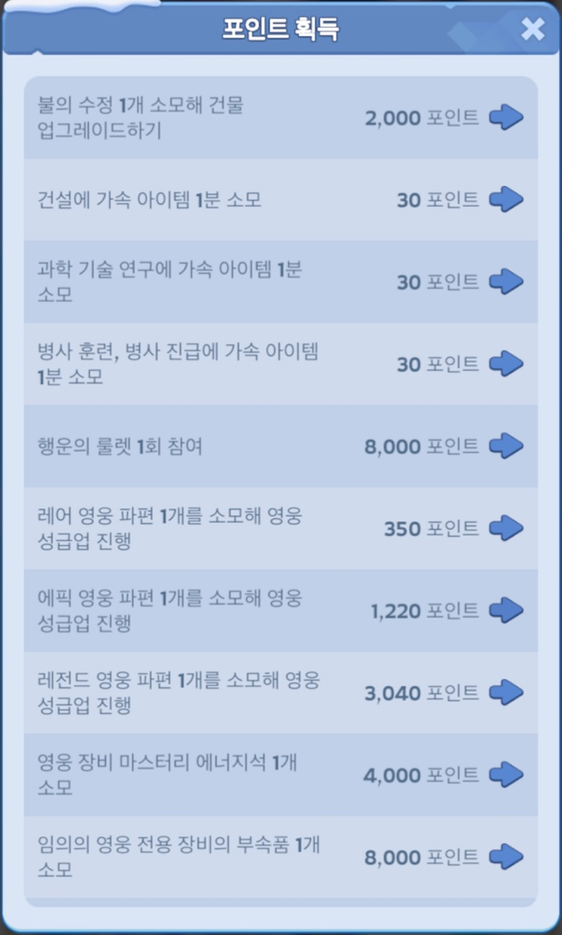 - 다이아도 없고, 가속도 없다면, 영웅 파편 소모를 통해 포인트 획득을 하는 것을 추천합니다.