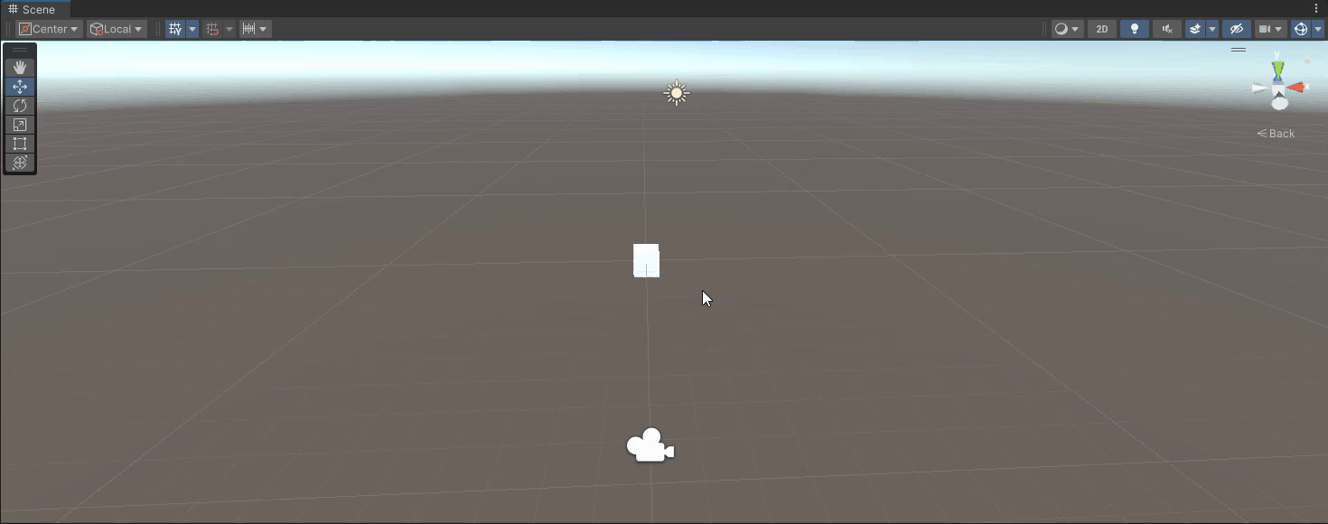 - 드래그하면 씬이 회전하고,화면 위의 씬 기즈모도 함께 회전