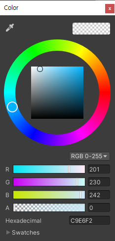 - Main Camera -> Inspector -> Camera 항목의 BackGround 에서 값을 변경한다.