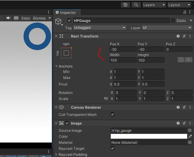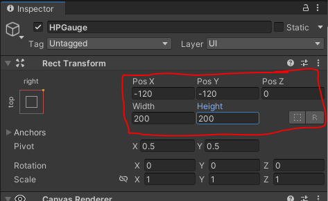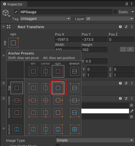- 화면의 크기가 바뀌어도 화면 오른쪽 위에 HP게이지가 표시되도록 앵커 포인트를 변경