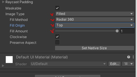 - Fill Amount 변수 값을 바꾸면 이미지 표시 영역을 줄이거나 늘릴 수 있다.