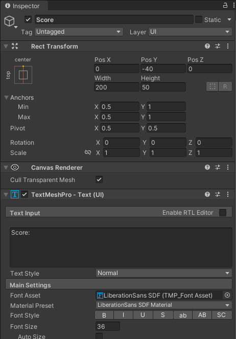 this.score.GetComponent<TMPro.TextMeshProUGUI>().text = "Score : " + GetPoint();