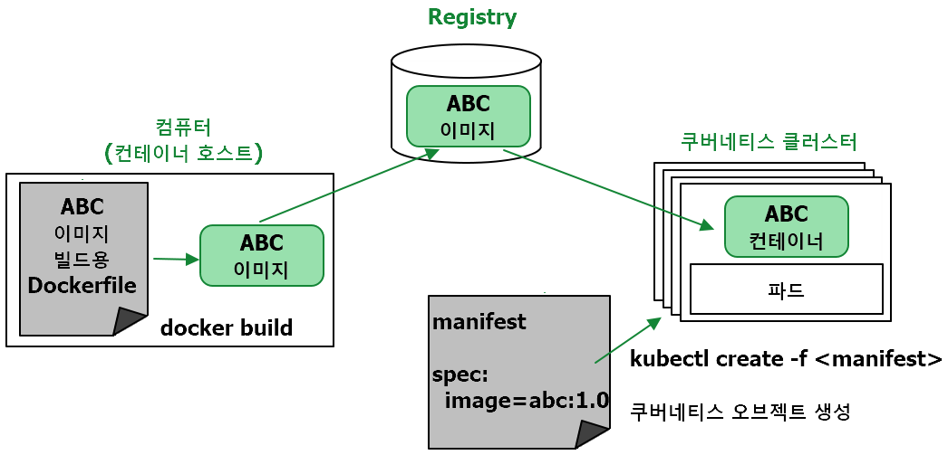 - 쿠버네티스에서도 레지스트리에서 이미지를 다운로드 받아 컨테이너를 실행함