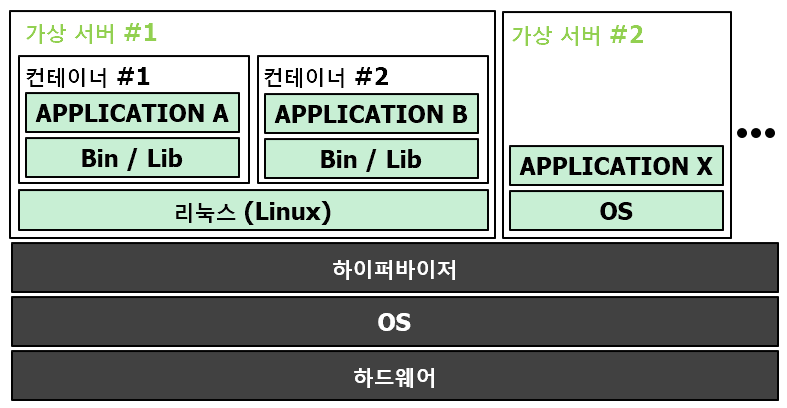 - 하나의 물리 서버나 가상 서버 위에서 여러 개의 컨테이너를 돌릴 수 있음