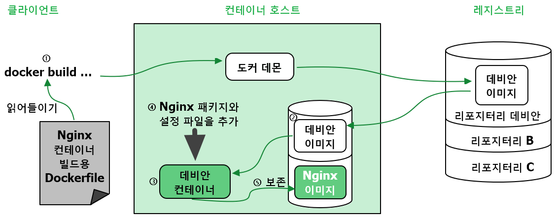 - docker build : 베이스 이미지에 기능을 추가해 새로운 이미지를 만듦