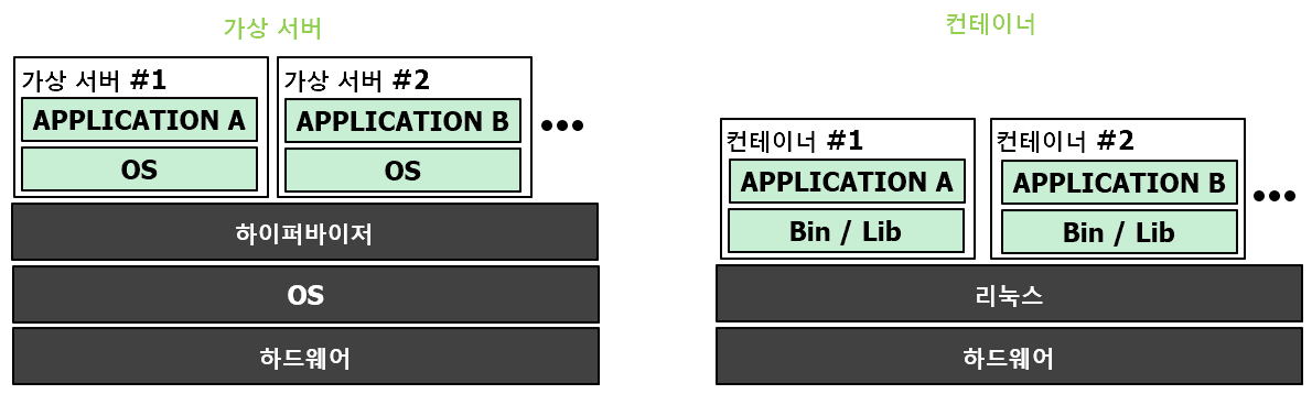 - 하나의 물리 서버나 가상 서버 위에서 여러 개의 컨테이너를 돌릴 수 있음