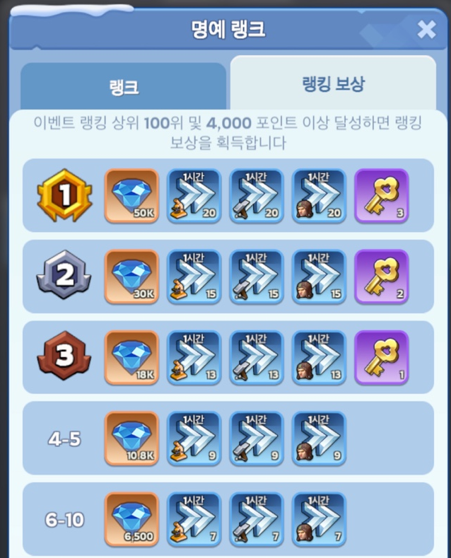 사실 핵과금러도 영웅 조각 주는 이벤트(최강영주/빙원의왕)를 위해서 중간 이벤트를 다 패스하거나 기본점수만 하는 입장에서, 랭킹권에 든다는게 그렇게 메리트 있는 이벤트는 아니다.
