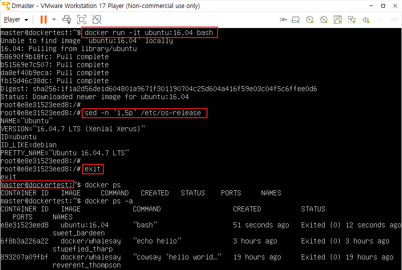 - ubuntu:16.04 이미지를 실행해서 bash shell을 실행