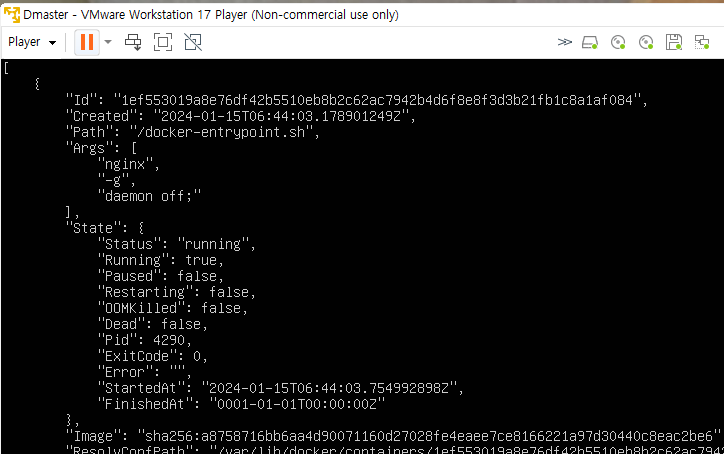 ## 컨테이너의 상세 정보를 출력함