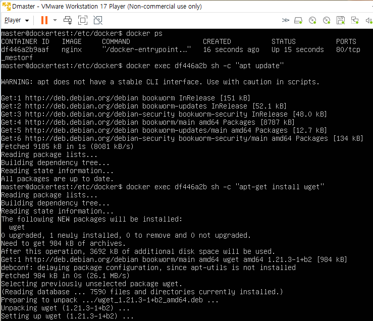 docker exec df446a2b sh -c "apt install wget"