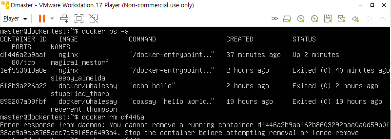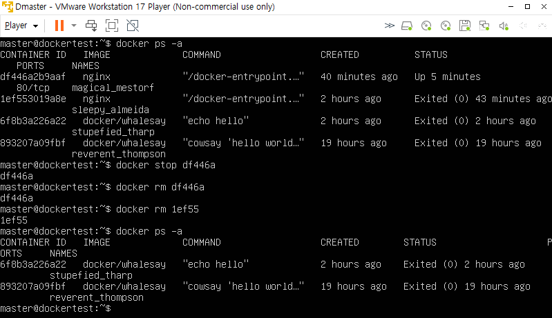 docker rm <CONTAINER_ID> # 삭제