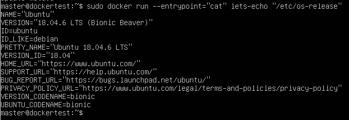 # --entrypoint 옵션을 줘서 ENTRYPOINT = ["echo"] => ["cat"] 으로 변경