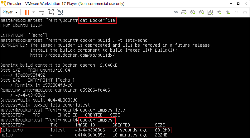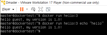 - echo "hello" 로 파라미터로 전달해도 실행 명령이 override 되지 않음