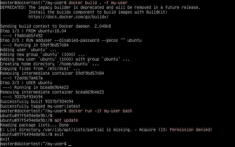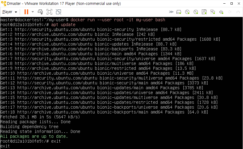 - root 권한으로 만들려면 --user 옵션을 이용해서 명시적으로 유저를 입력 가능