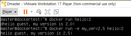 - 이미지 빌드 시점에서 환경변수의 값을 바꾸더라도 컨테이너 실행 시점에서 여전히 환경변수 변경 가능