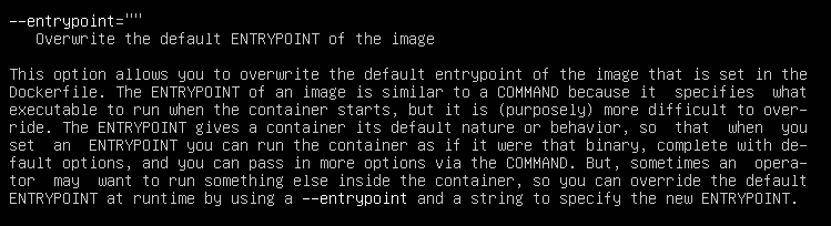 - entrypoint를 이용할 때 --entrypoint 옵션으로 강제로 override 하는 방법