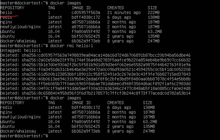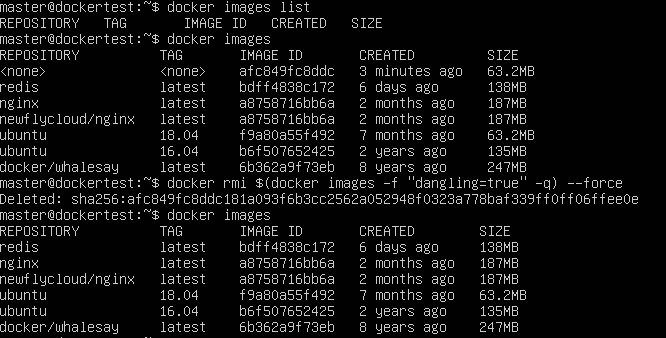$ docker rmi $(docker images -f "dangling=true" -q) --force