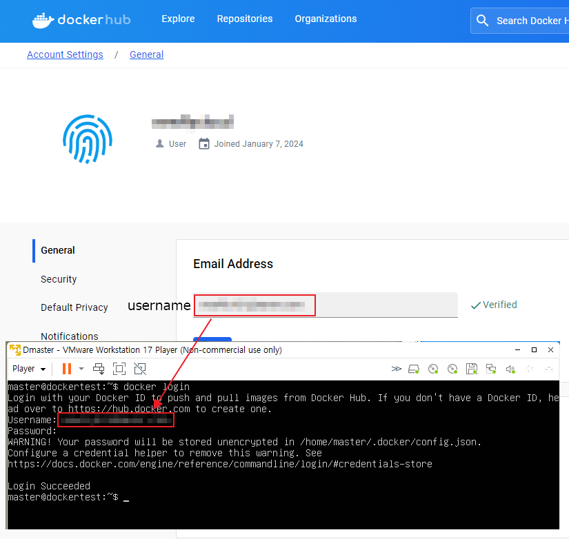 - username이 Email Address 이다.. 접속정보이니, 도커 허브에 로그인할 때 기준으로 입력해야 접속이 가능