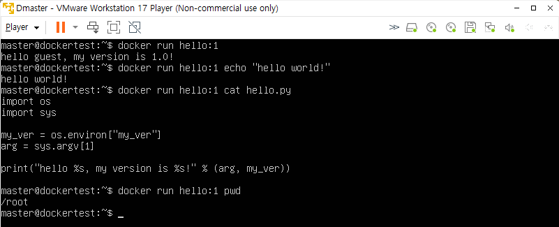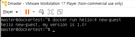 - new-guest가 실행 명령으로 override 되지 않고 python hello.py의 파라미터로 전달됨을 확인할 수 있다