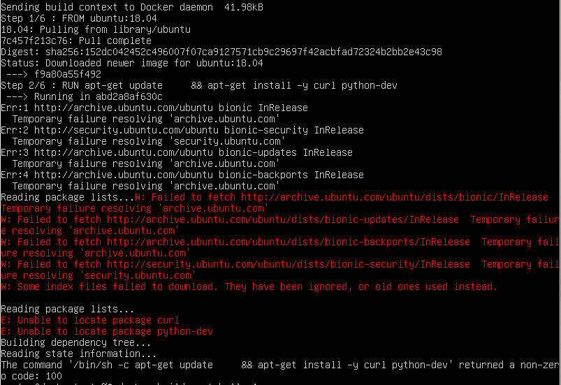# docker build --network=host 호스트 네트워크로 진행해서 연결의 일시적 실패가 뜨지 않음