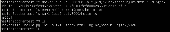 docker run -p 6000:80 -v $(pwd):/usr/share/nginx/html/ -d nginx