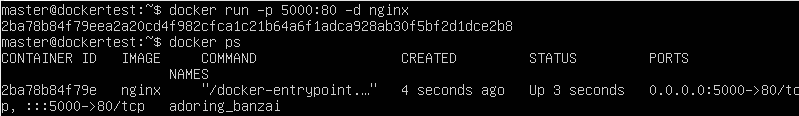 - 호스트의 5000 port -> container의 80 port와 매핑하는 예제