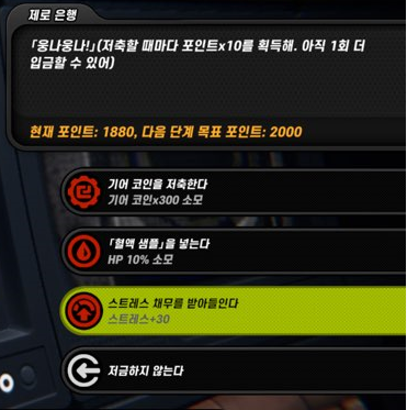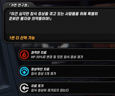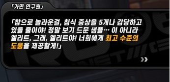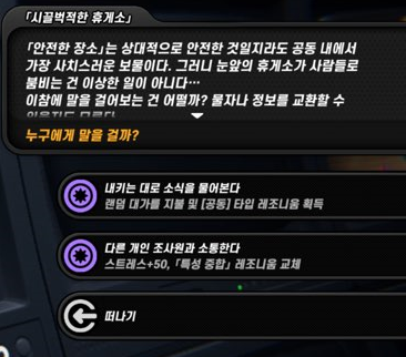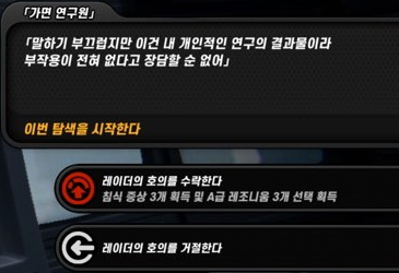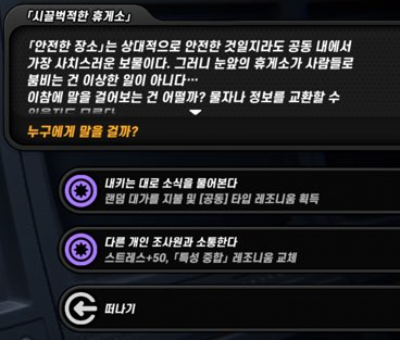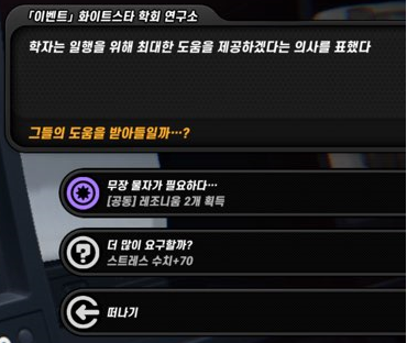 ② 다른 개인 조사원과 소통한다 : 스트레스 +50, 『특성 중합』 레조니움 교체