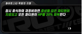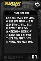 - 촉매: [극한 지원] 시 HP 5%회복(최대 6회 * 3에이전트) 피해량 증가 30% 추가