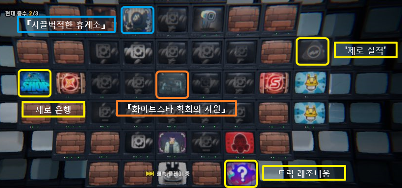 침식 시 피해량 증가 5% 추가 (최대 50% 추가)촉매: [극한 지원] 시 HP 5%회복(최대 6회 * 3에이전트) 피해량 증가 30% 추가- 침식 증상 3개 획득 : 피해량 15% 증가- A급 레조니움 3개 획득1층 맵 종류2층