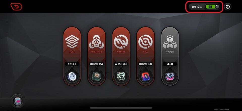 우측 상단의 몰입 모드를 꺼야 '시간 시스템' 에 영향을 줄 수 있다.