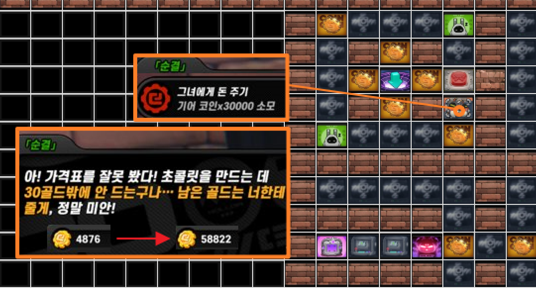 관용은 폭탄을 판매하는데 흥정하면 기어 코인 가격이 반값이 된다.