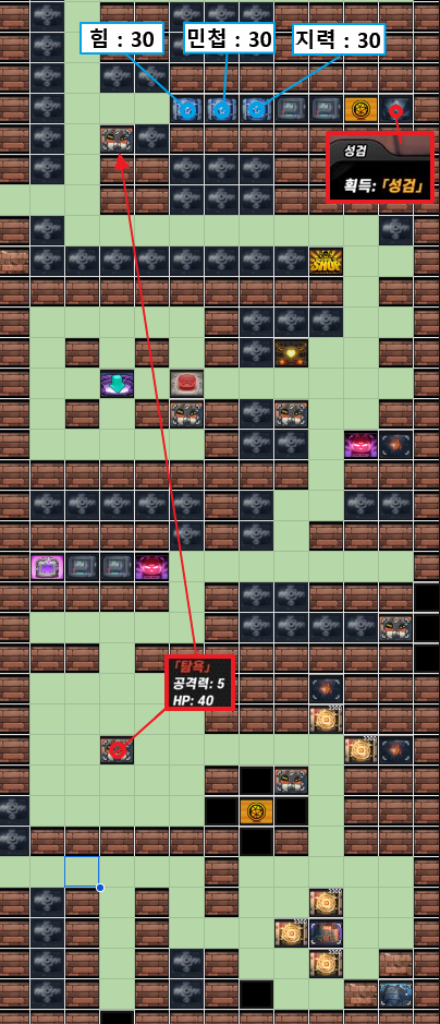 저 파란 ? 는 열쇠를 절대 획득 할 수 없기 때문에 우측 하단에 부서진 벽을 폭파해서 들어가는 것을 권장한다.